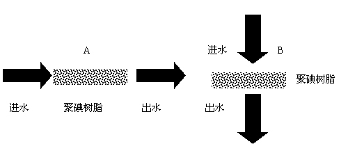 從上圖中可以看出B的設計是錯誤的,水與聚碘樹脂的接觸時間太短,殺菌的效果不好。A的設計顯然比B的更科學,根據我們的經驗飲用水(一般自來水)經聚碘樹脂過濾的時間在 2—4 秒就完全可達到殺菌的目的。水流行運應設計成:水-礦化-磁化-聚碘樹脂-活性炭或活性炭纖維.