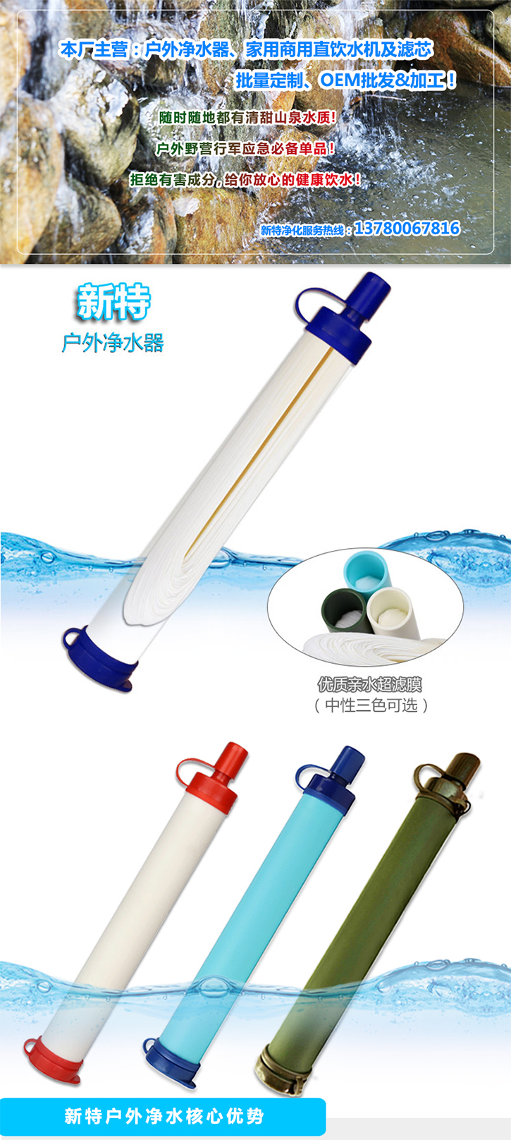 B-QM型戶外便攜式凈水吸管 野外個人生存吸管式凈水器(全膜絲結構類似LIFESTRAW)