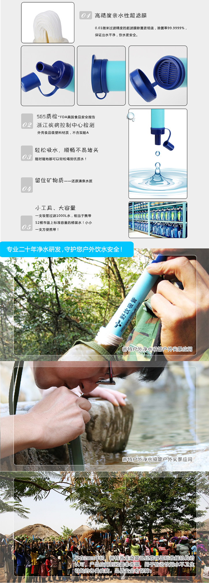 | 【產品名稱】 | B-QM型戶外便攜式凈水吸管 野外個人生存吸管式凈水器 |