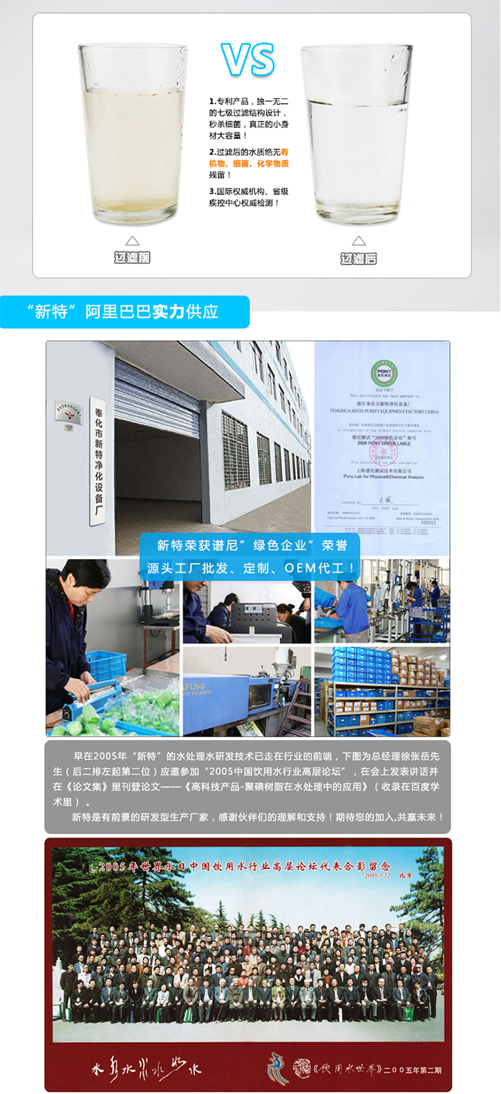 0.1微米高精度親水性微孔膜高效去除細菌,去除微細顆粒物高效降低濁度,永久性親水,大通量吸水更輕松,第一口不產生“黑水”,過濾后水質明亮清澈。