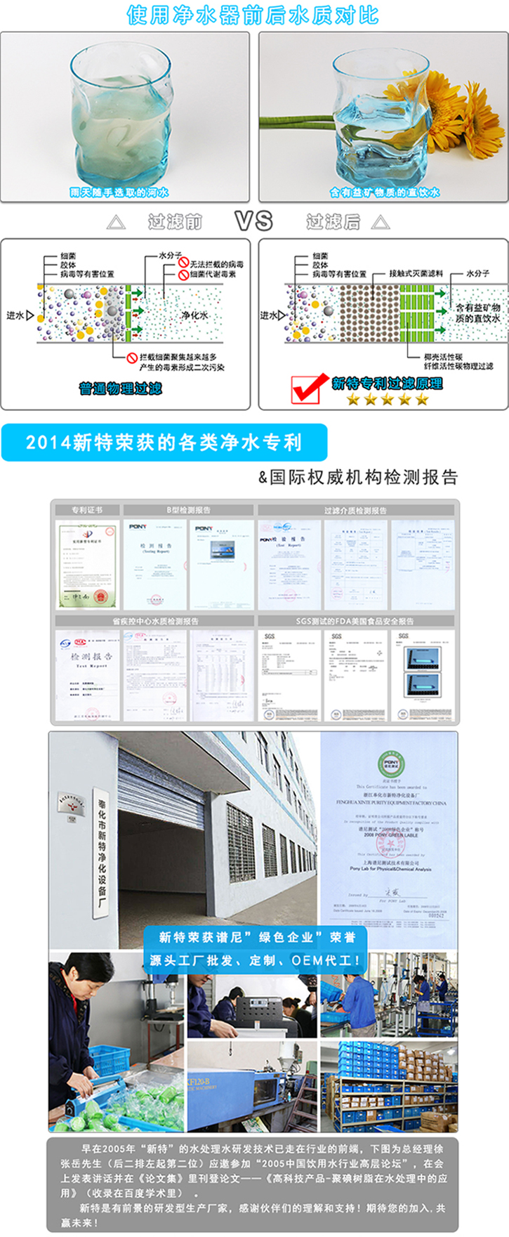 產(chǎn)品結(jié)構(gòu):高聚碘殺菌樹脂過濾層+顆粒椰殼活性炭過濾層+碳纖維活性炭過濾層+多功能通用螺紋接頭(結(jié)構(gòu)圖詳見下文中凈水吸管結(jié)構(gòu))