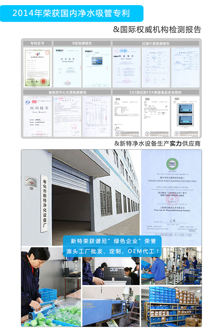 產品優勢:B1型能直接過濾出含有益礦物質的飲用水,吸水順暢,沒有二次污染。新特專利款,國際權威機構檢測SGS、譜尼等檢測報告,安全便捷!B2型除了擁有B1型的產品優勢以外,還可以去除水中的各種重金屬物質,是新特的獨家研發專利產品!