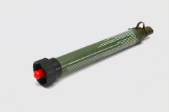 B-Y型微型戶外便攜式凈水器的結構與B1型完全相同,規格尺寸180×Φ23mm,重量凈重55g毛總70g,有軍綠色,樹葉迷彩色,軍綠迷彩等多種顏色可選,包裝規格20X5X2.8cm,使用壽命800L.